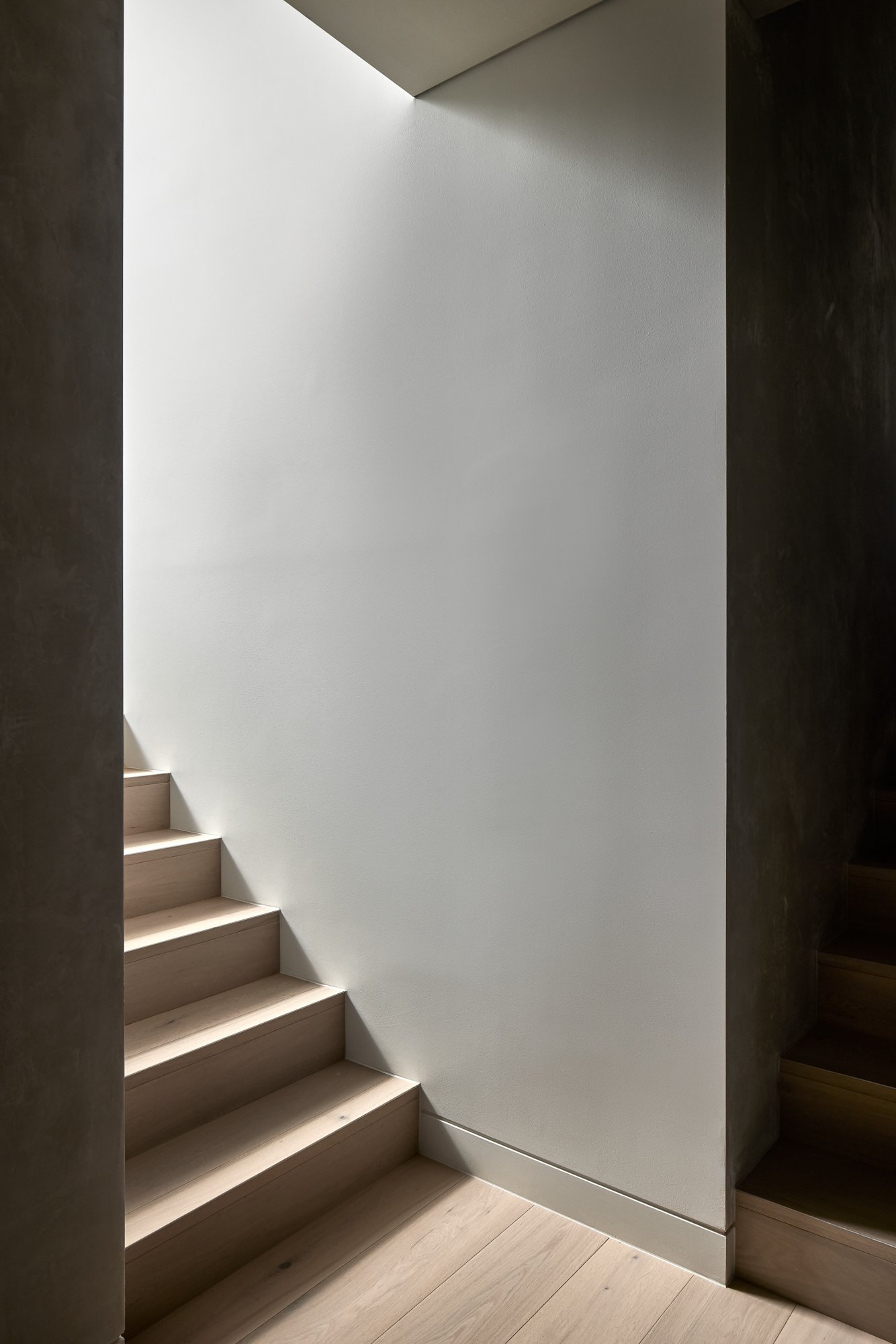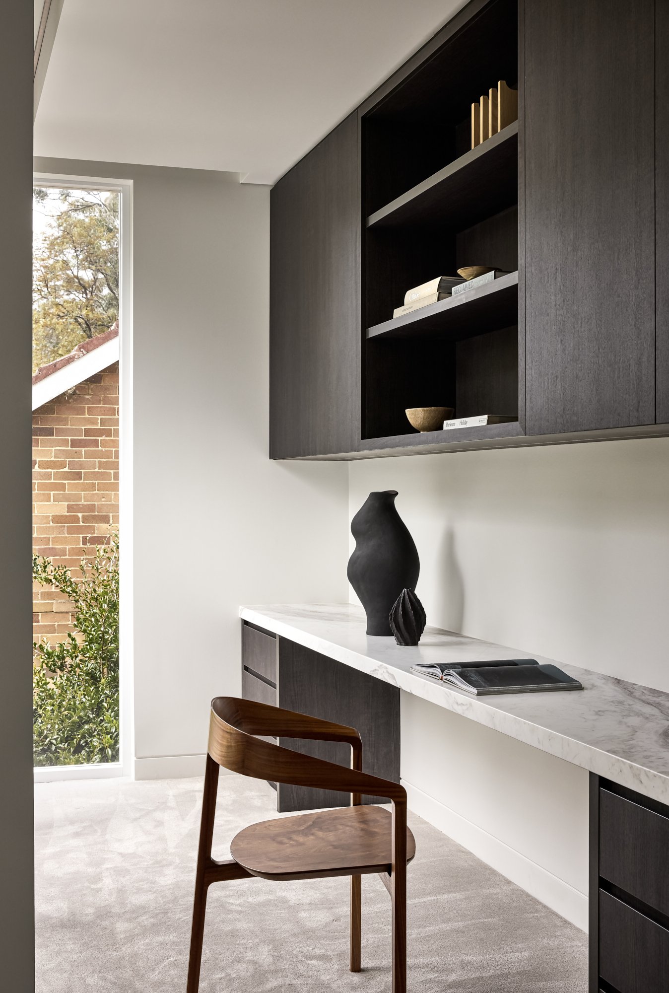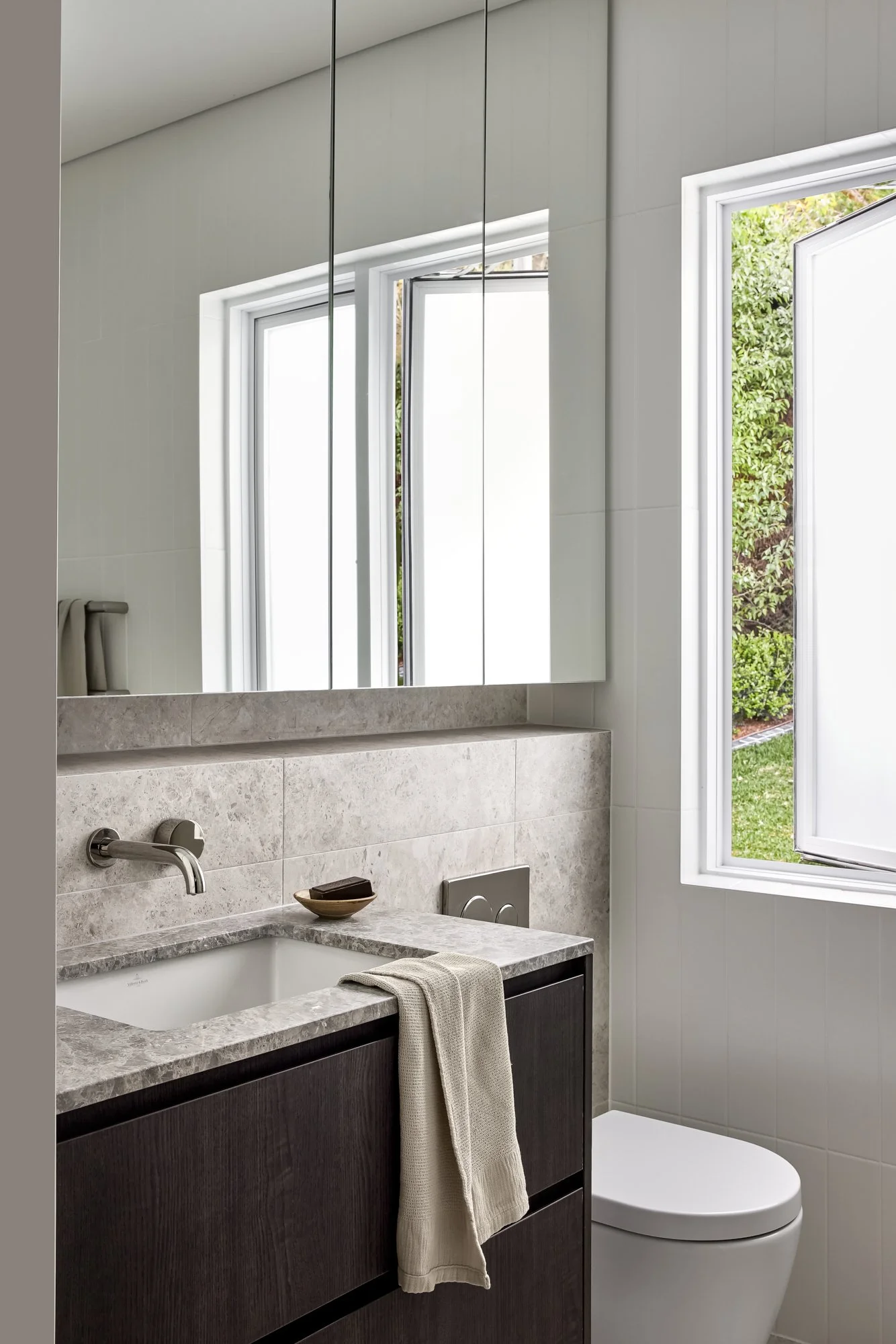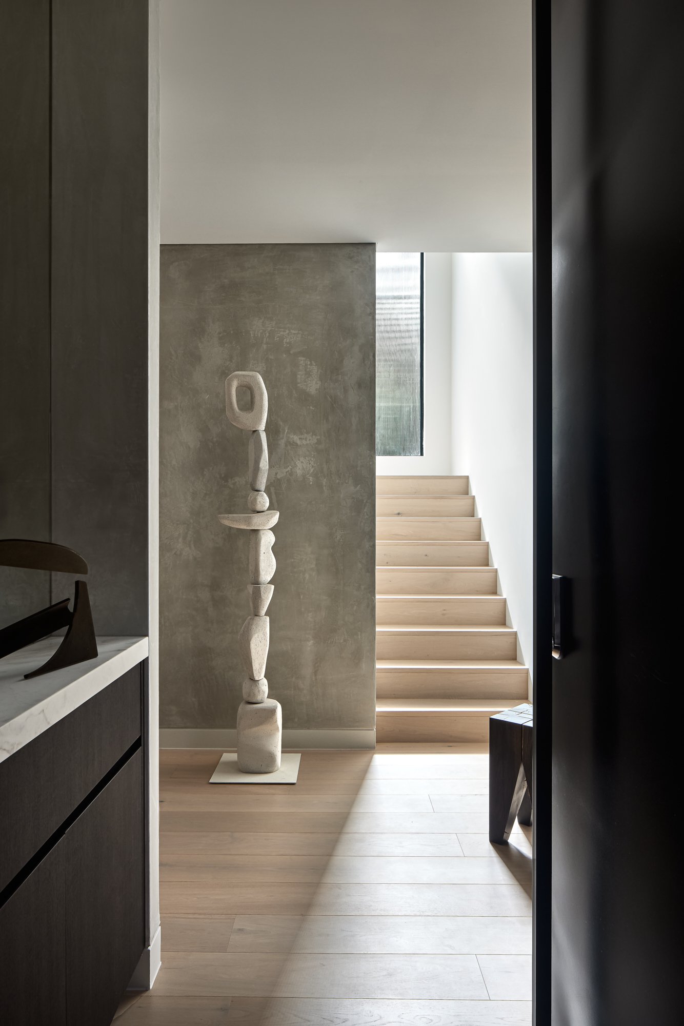 A 1970s Chatswood home transformed into a minimalist retreat - originally extended in the 90s and now completely reimagined for the owners who have lived here for 30 years. The design is defined by a commitment to natural materials and tranquillity: Venetian plaster walls in muted earthy tones, white-washed timber floors, and Volakas marble used dramatically across the kitchen island and benchtops. The shoot focused on capturing that tonal and textural restraint - the way the plaster walls shift in quality across the day, the interiors opening fully to the tree canopy beyond through full-height pivot doors, and the canopy-level bedroom that feels suspended in the surrounding greenery.