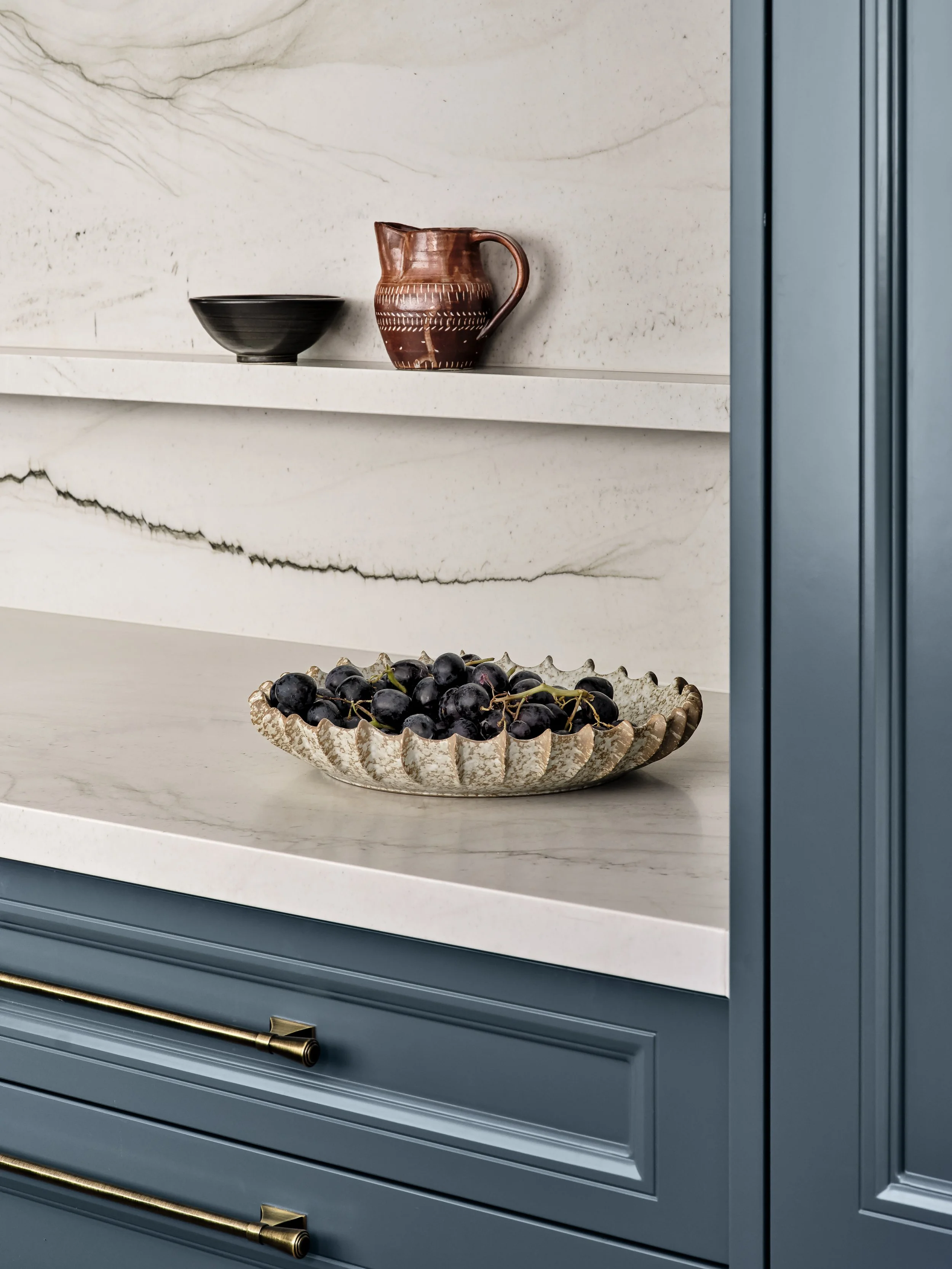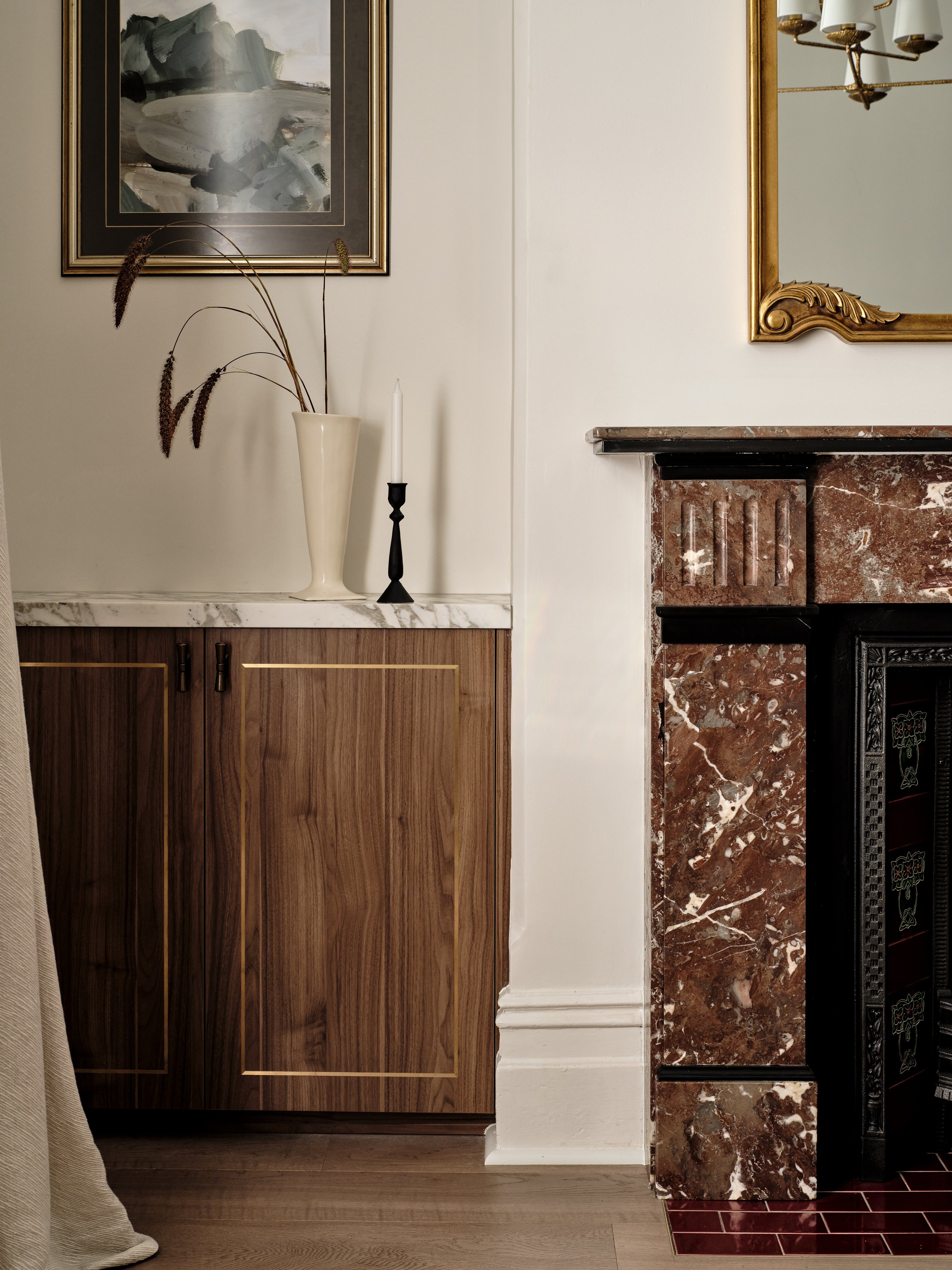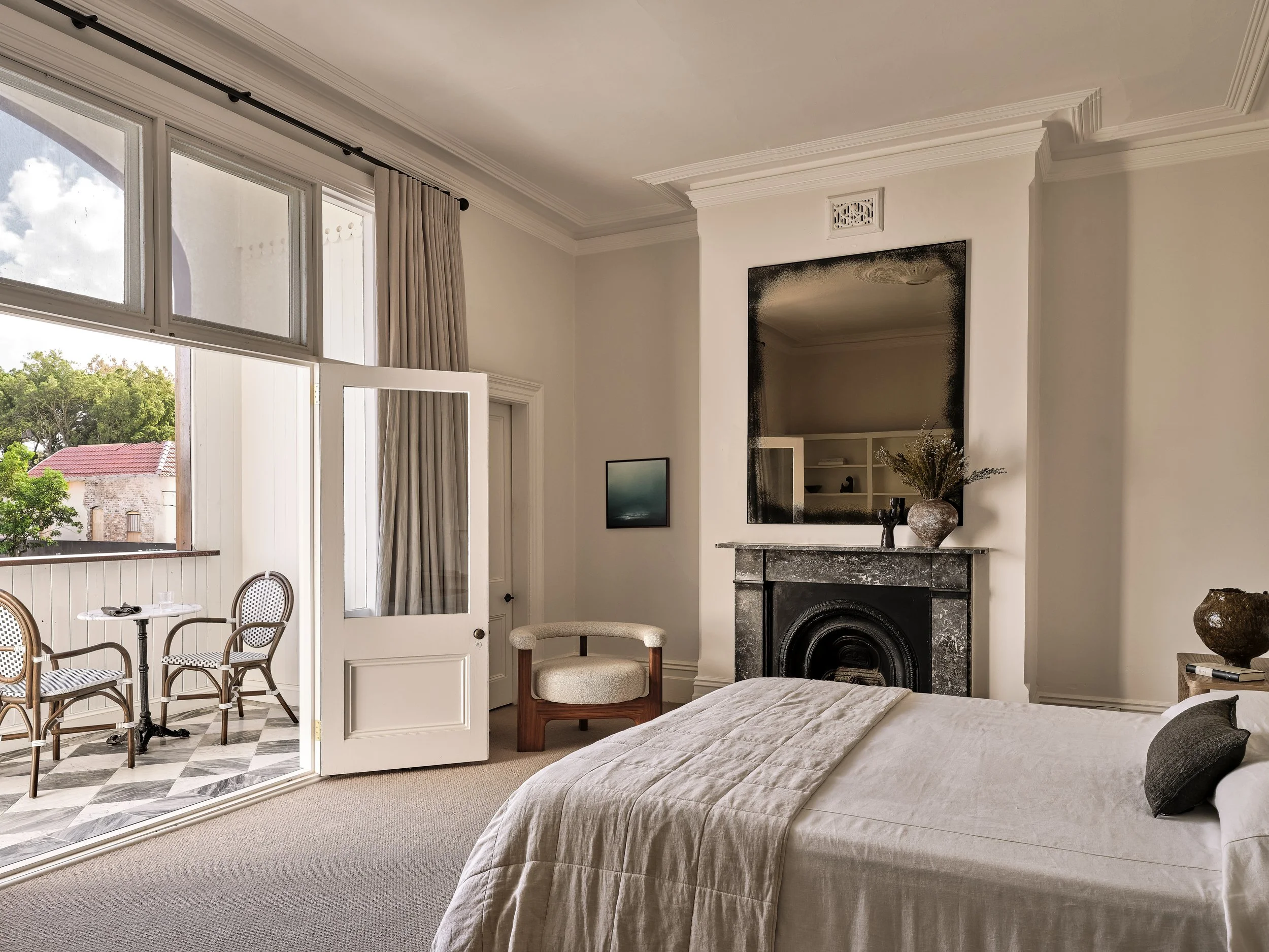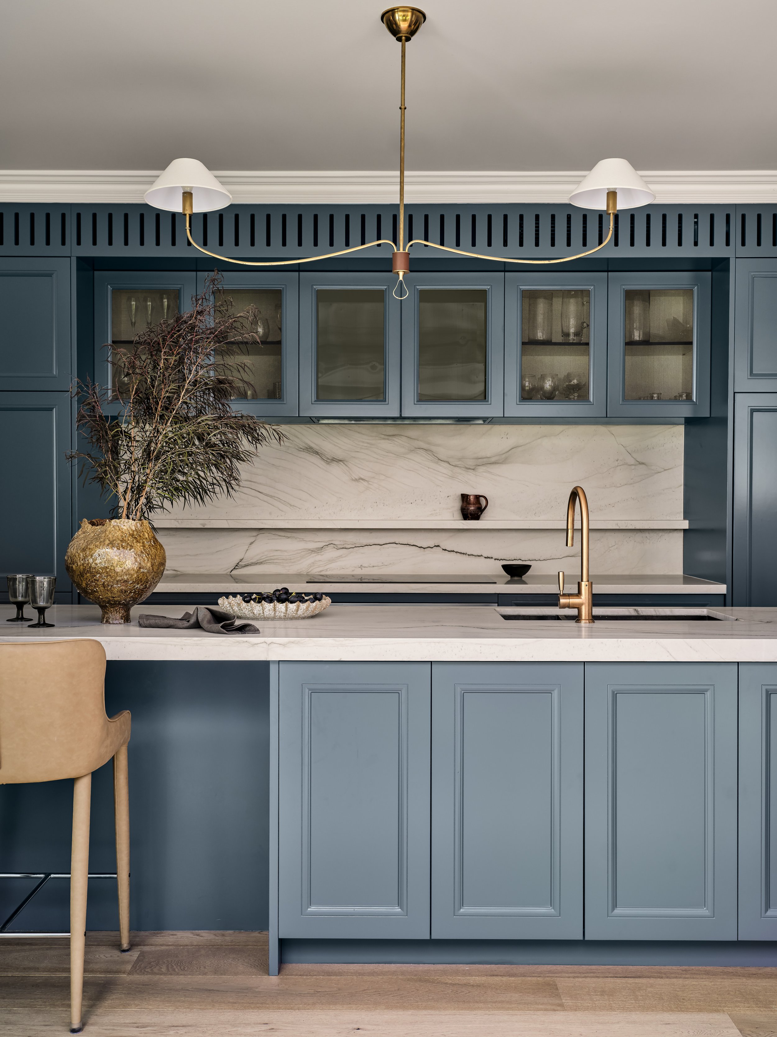 A grand late Victorian terrace in the heart of Glebe, just a stone’s throw from the city and harbour, meticulously renovated for a modern family while preserving everything that makes the original architecture special - ornate cornices, intricate plasterwork, and stained glass that casts coloured light through the entry hall. The shoot was focused on capturing that conversation between old and new: the cedar shingles and arched brick portico giving way to a bold blue kitchen with marble splashback, rich original fireplaces paired with contemporary artwork, and formal rooms brought to life with colour, warmth and natural light. The period detailing rewards close attention, and the photography leaned into that layering throughout.