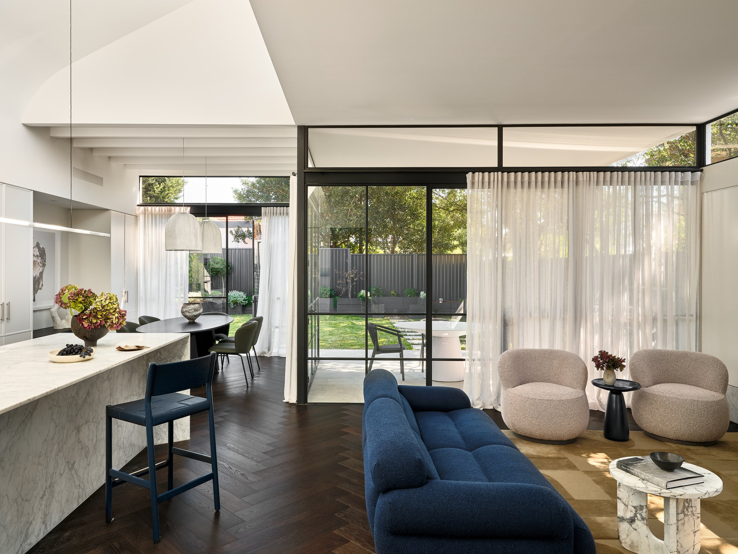 A light-filled extension transforms this Kensington home into a generous kitchen, living and dining hub where family life naturally unfolds. The shoot focused on capturing the seamless transition between the original home and the new addition - revealing how light filters through the more open living and kitchen spaces.