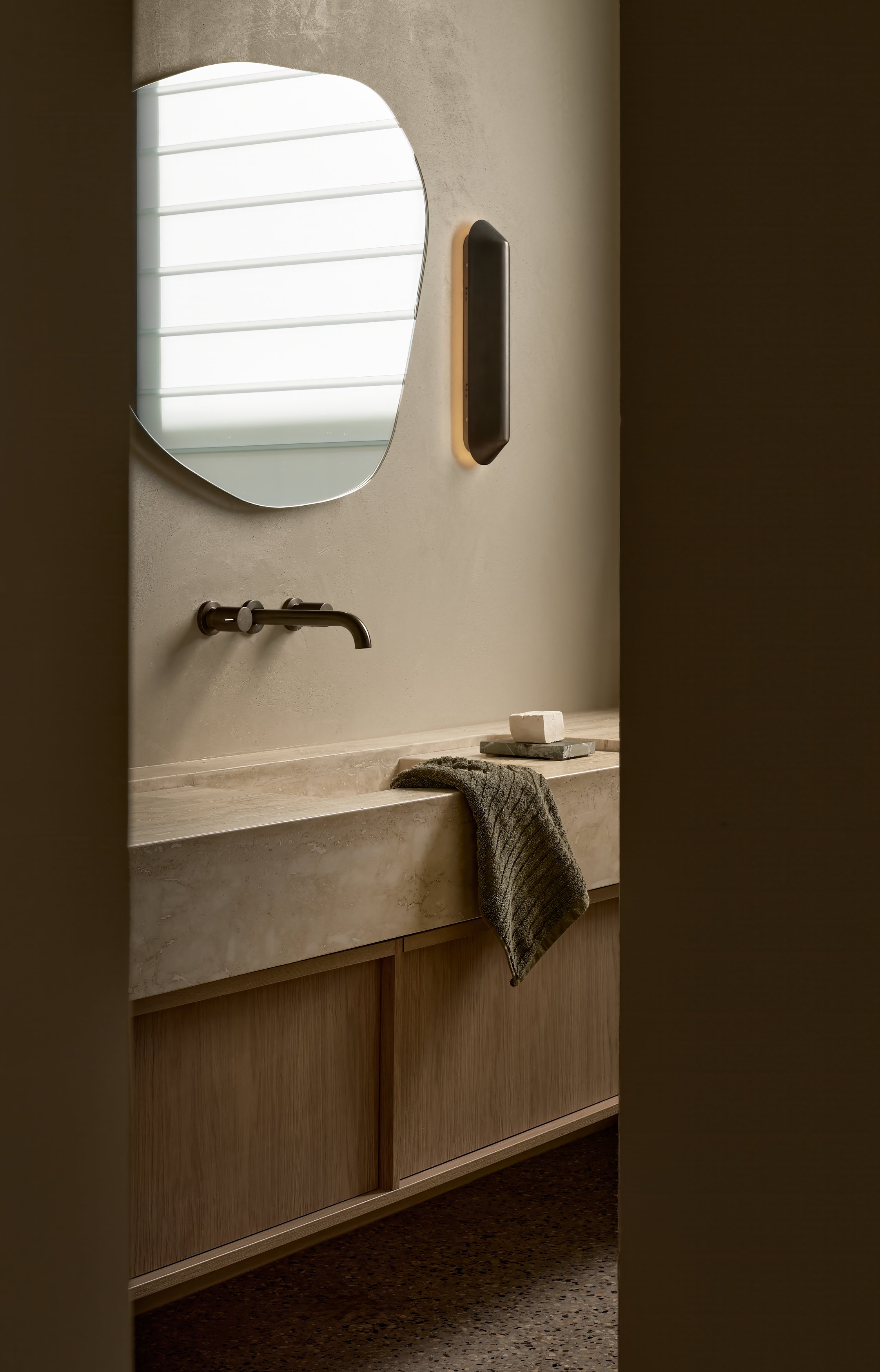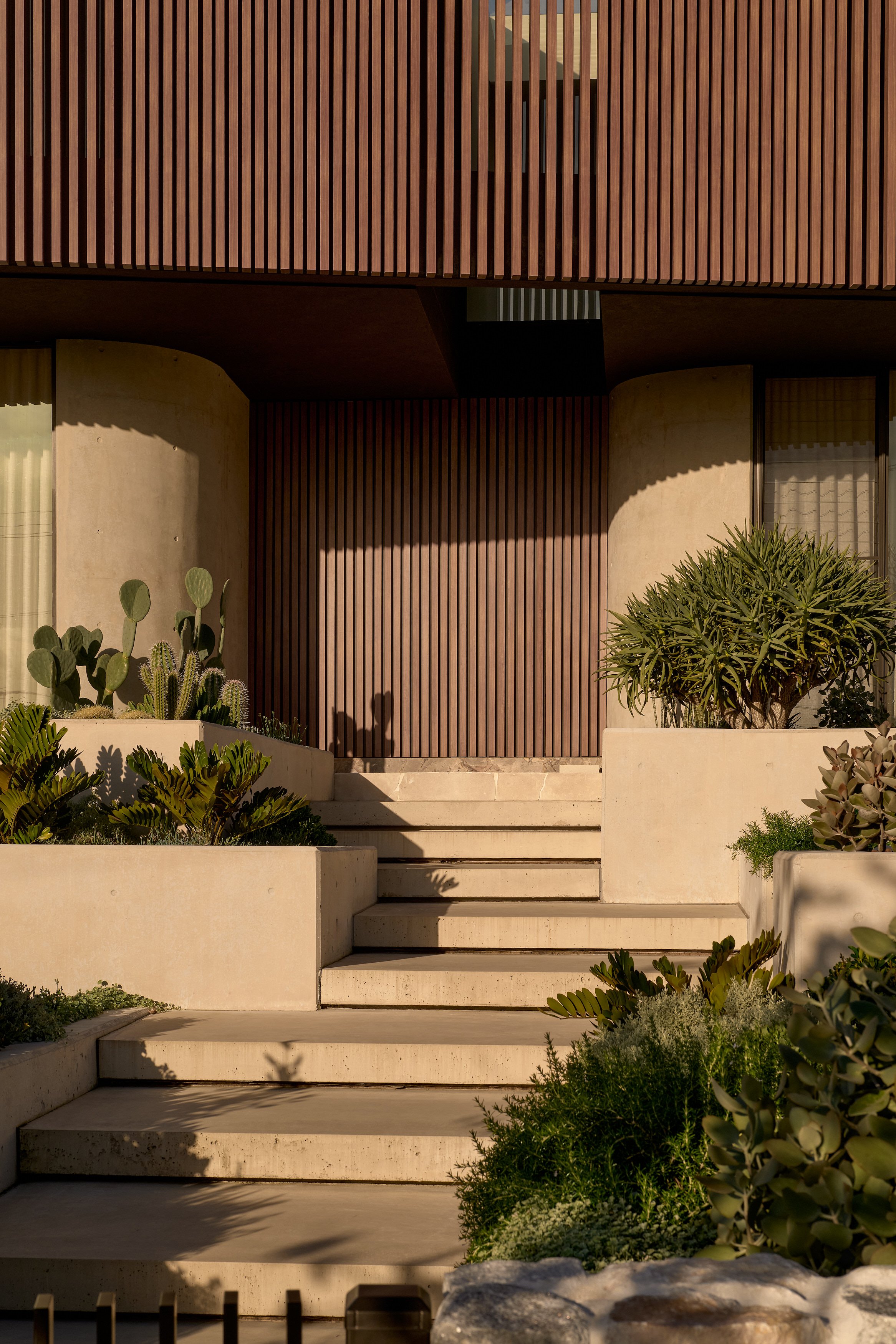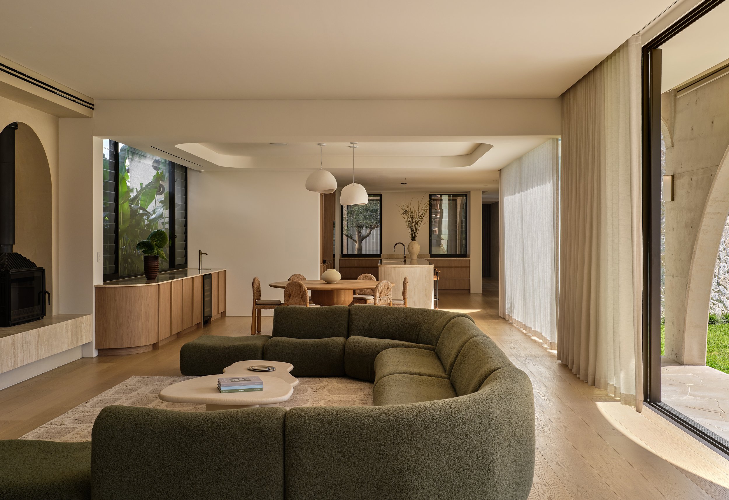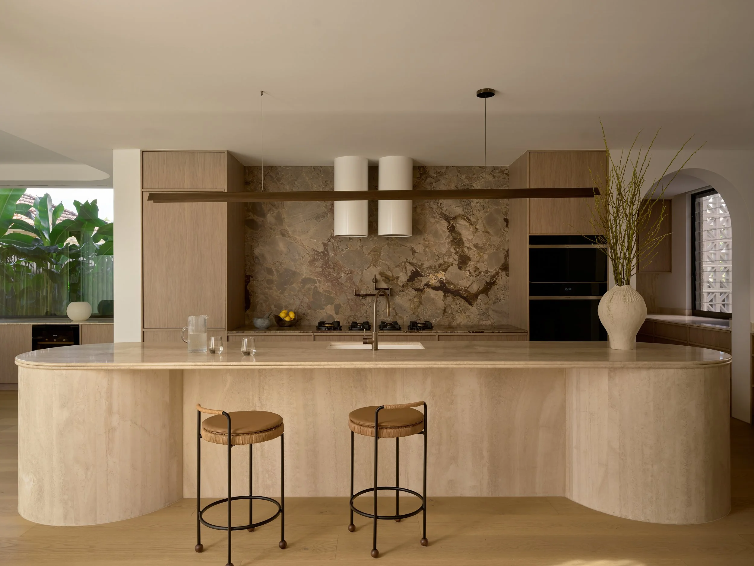 Turner House by Habitat Housing is a study in sculptural concrete and warm natural materials. The arched forms that define the architecture - from the poolside loggia to the circular outdoor pavilion - gave endless opportunities to explore how light shifts across raw surfaces throughout the day. Travertine, aged oak, and hand-finished plaster create a palette that rewards close attention, and the project was shot to reflect that, finding the quiet moments as much as the grand ones.